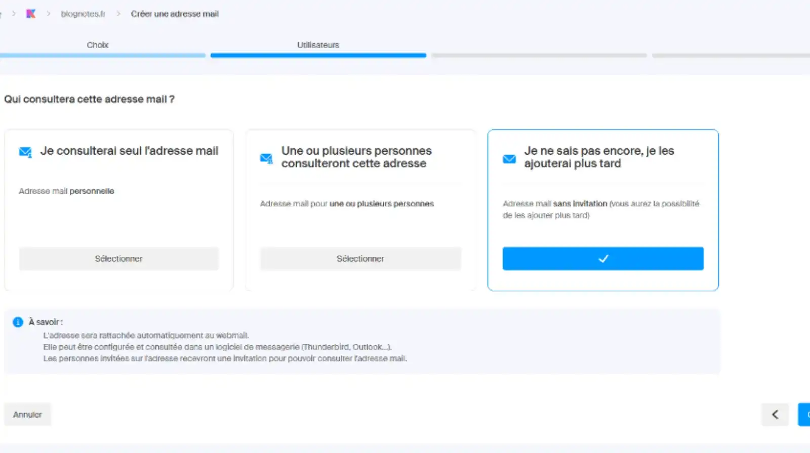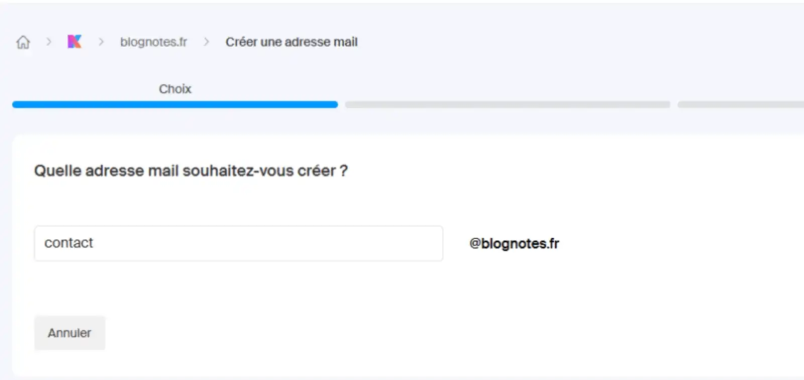 Sélectionnez Créer une adresse mail