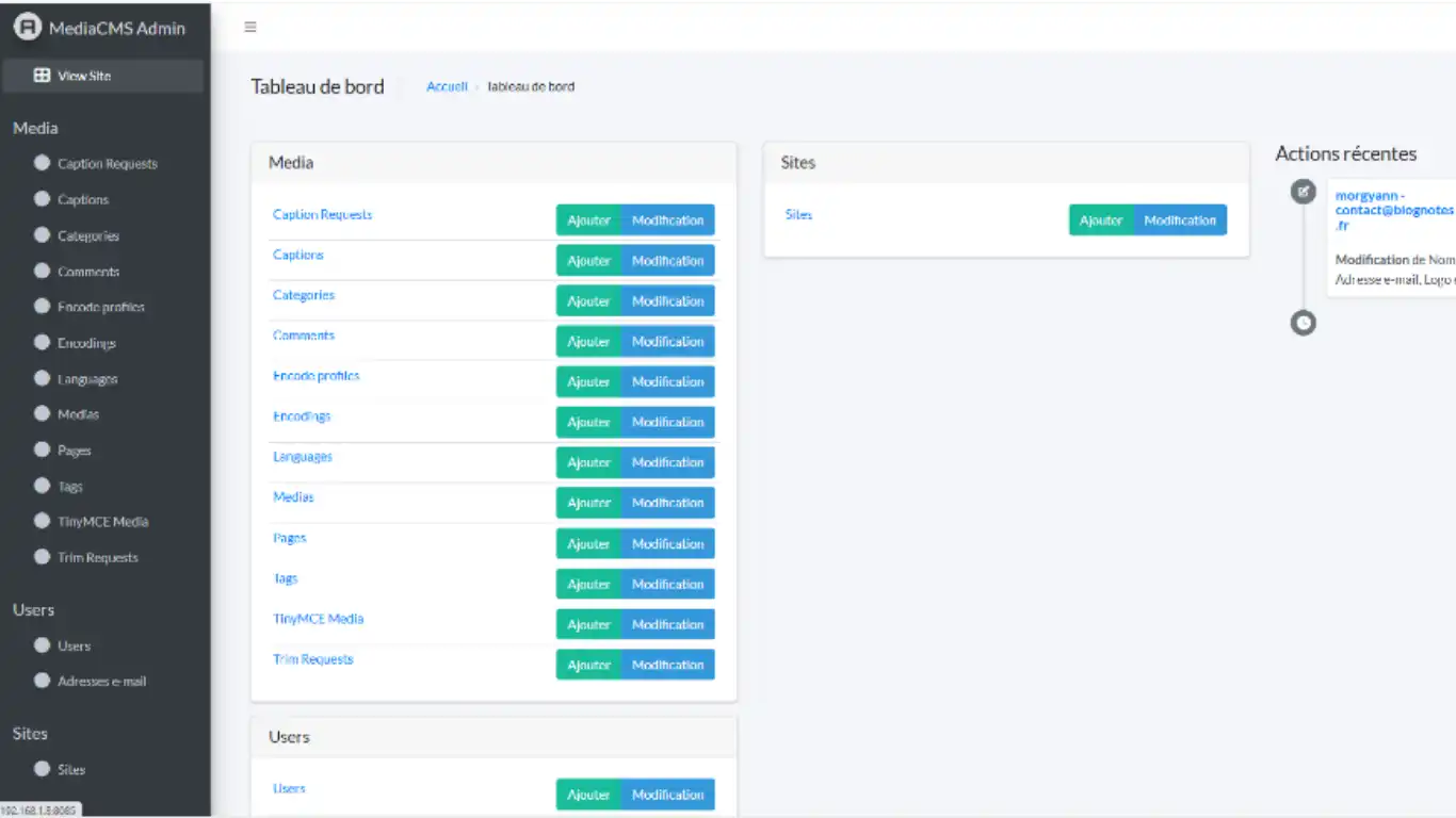 Cliquez sur l'icône en haut à droite et sélectionnez MediaCMS administration