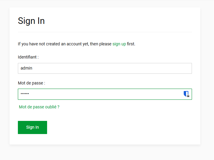 Indiquez sur le pop-up les identifiants indiqués précédemment, si vous les avez oubliés ce sont : admin = casaos + Signin