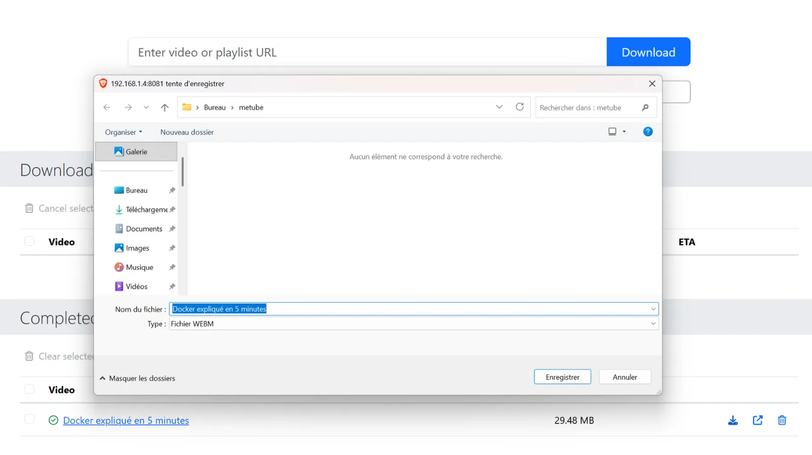 MeTube est une interface graphique Web pour youtube-dl (en utilisant le yt-dlp fork) avec prise en charge des playlists. Vous permet de télécharger des vidéos depuis YouTube et de nombreux d’autres sites.