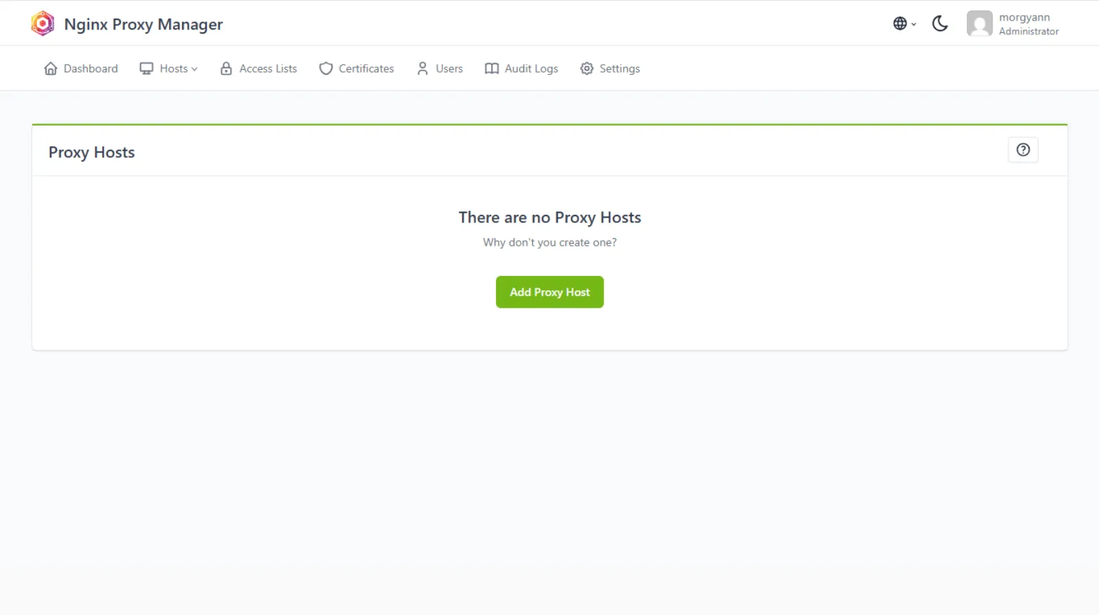 Pour configurer votre application sur le web, sélectionnez le second onglet Hosts et, sur le Bouton Add Proxy Host