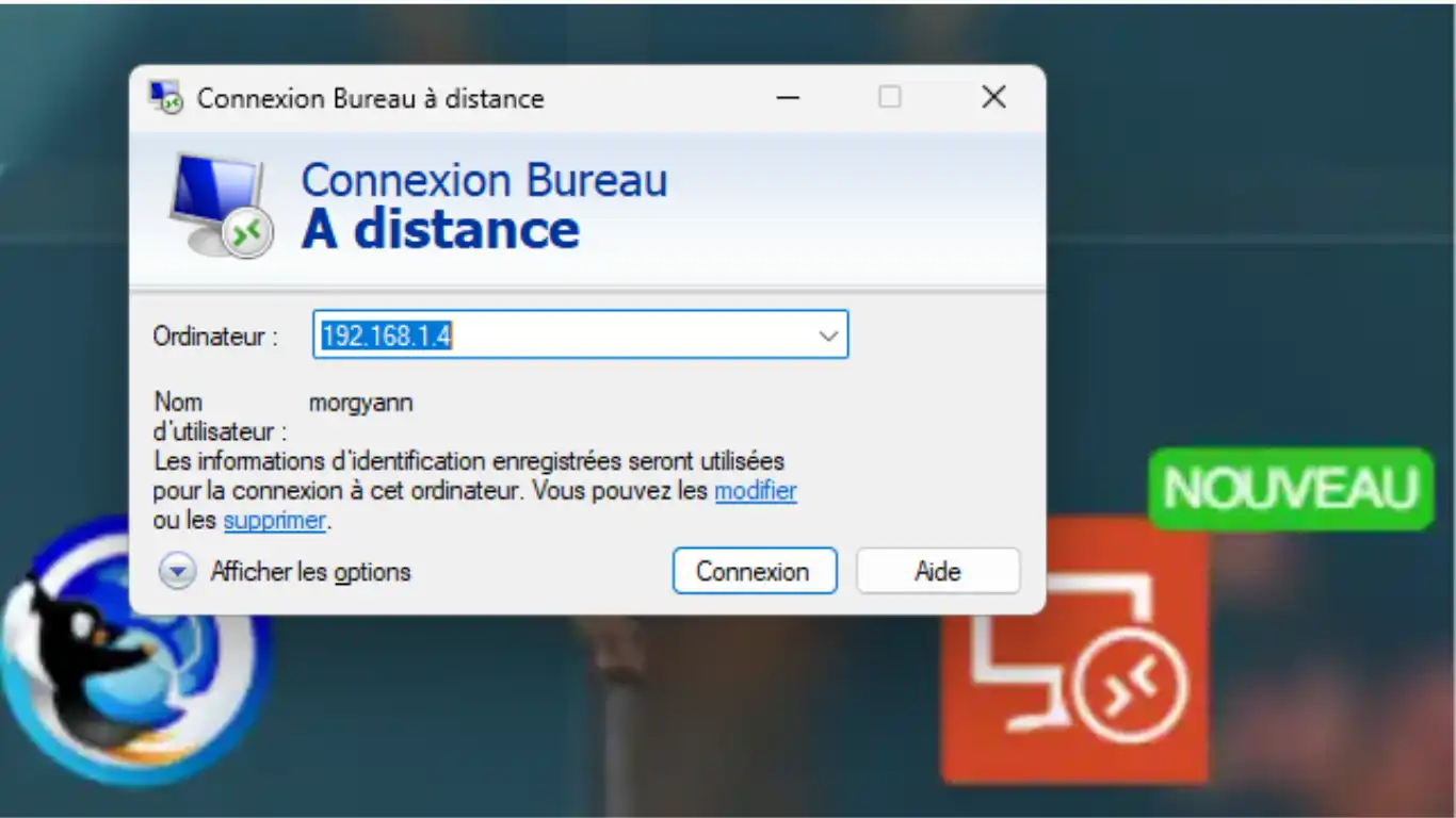 Ouvrez un client RDP sur un PC du réseau local. Indiquez l'IP locale du Serveur ZimaOS (ici 192.168.1.4) et cliquez sur Connexion