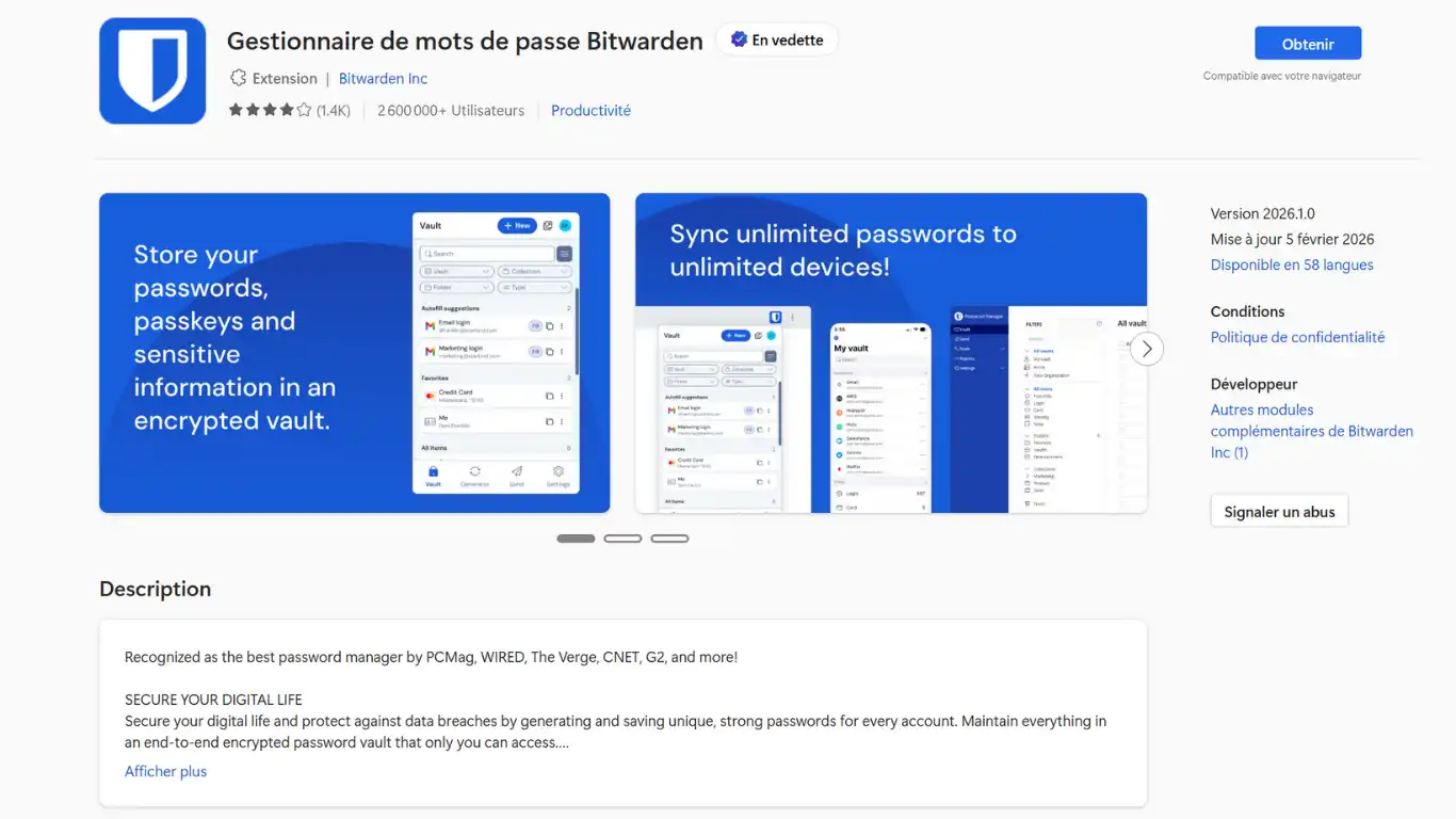 Installer l'extension Bitwarden