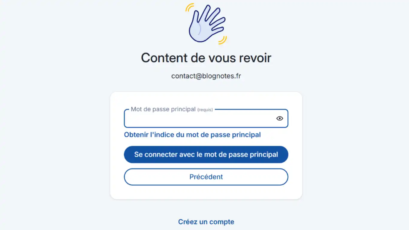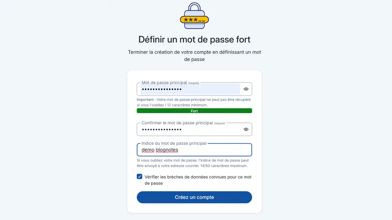 Définissez le mot de passe maître.