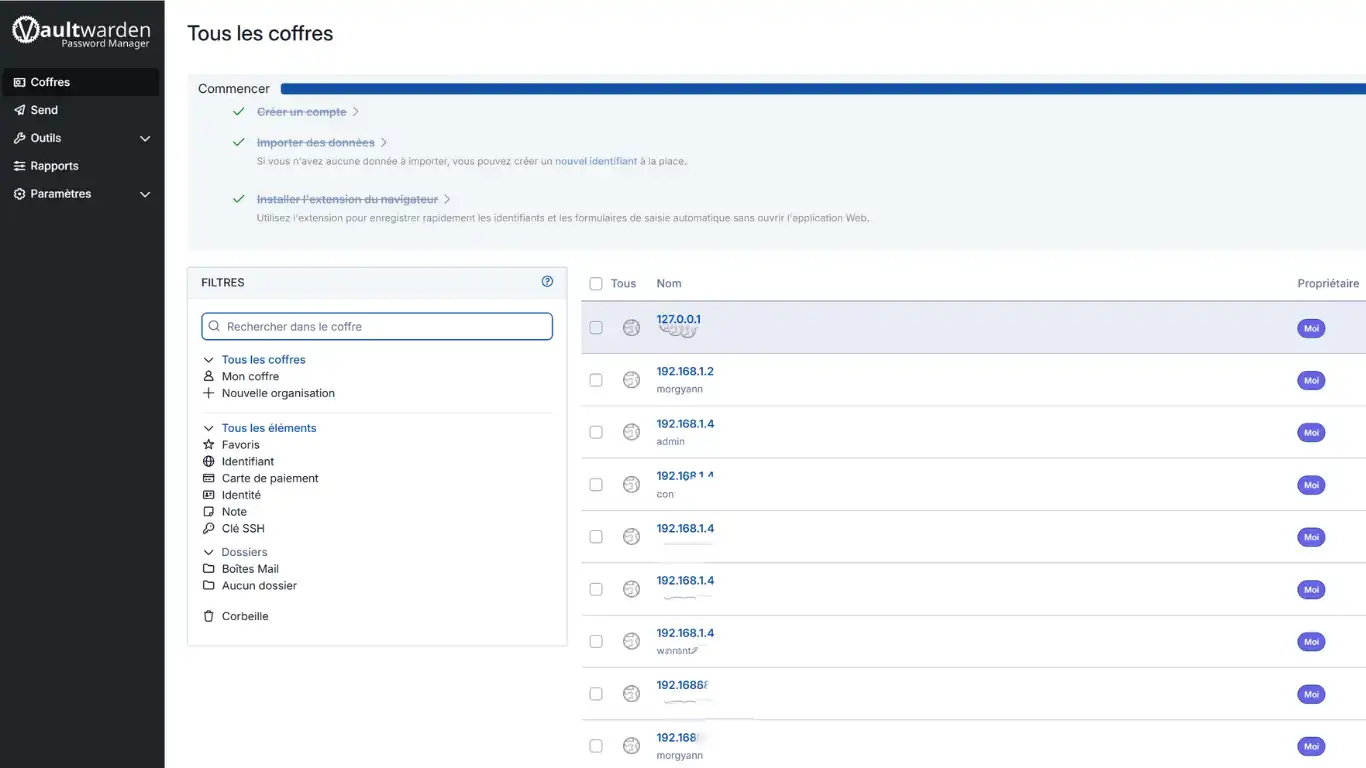 Ouvrez Vaultwarden sur son interface web et finalisez sa configuration (Importation, création de dossiers, double identification ...)