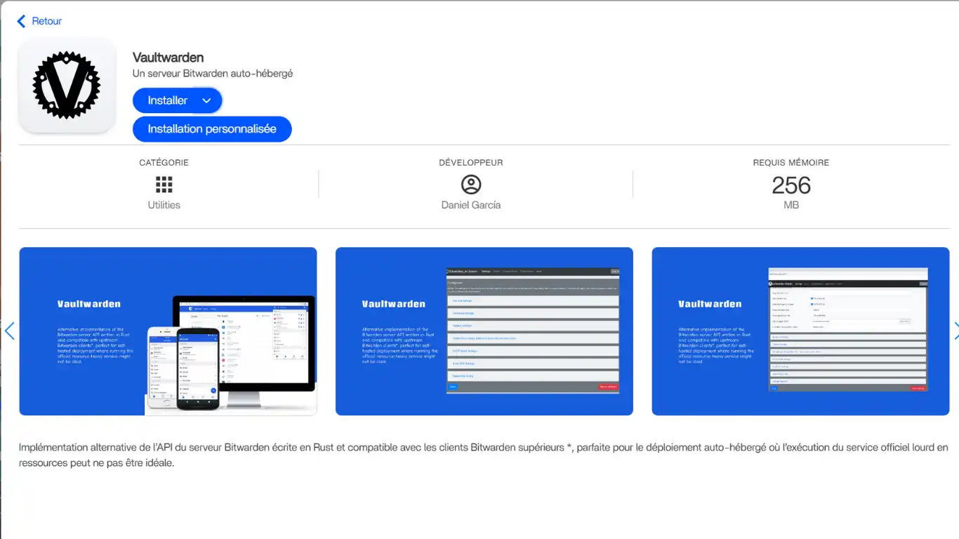 Avant d'installer l'application Vaultwarden, vous devez,