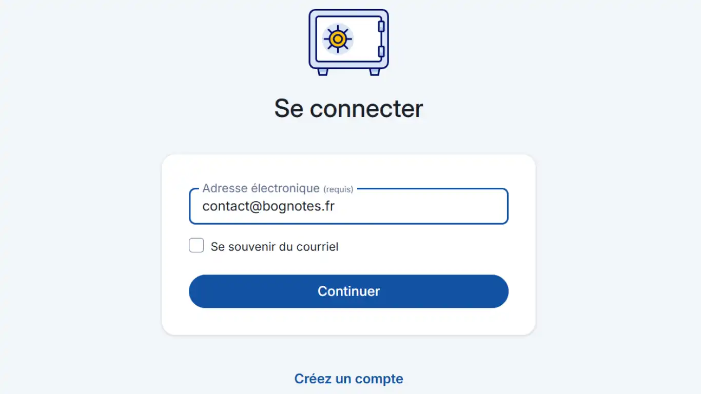Et, l'adresse courriel indiquée à la création du compte. Puis Continuer.