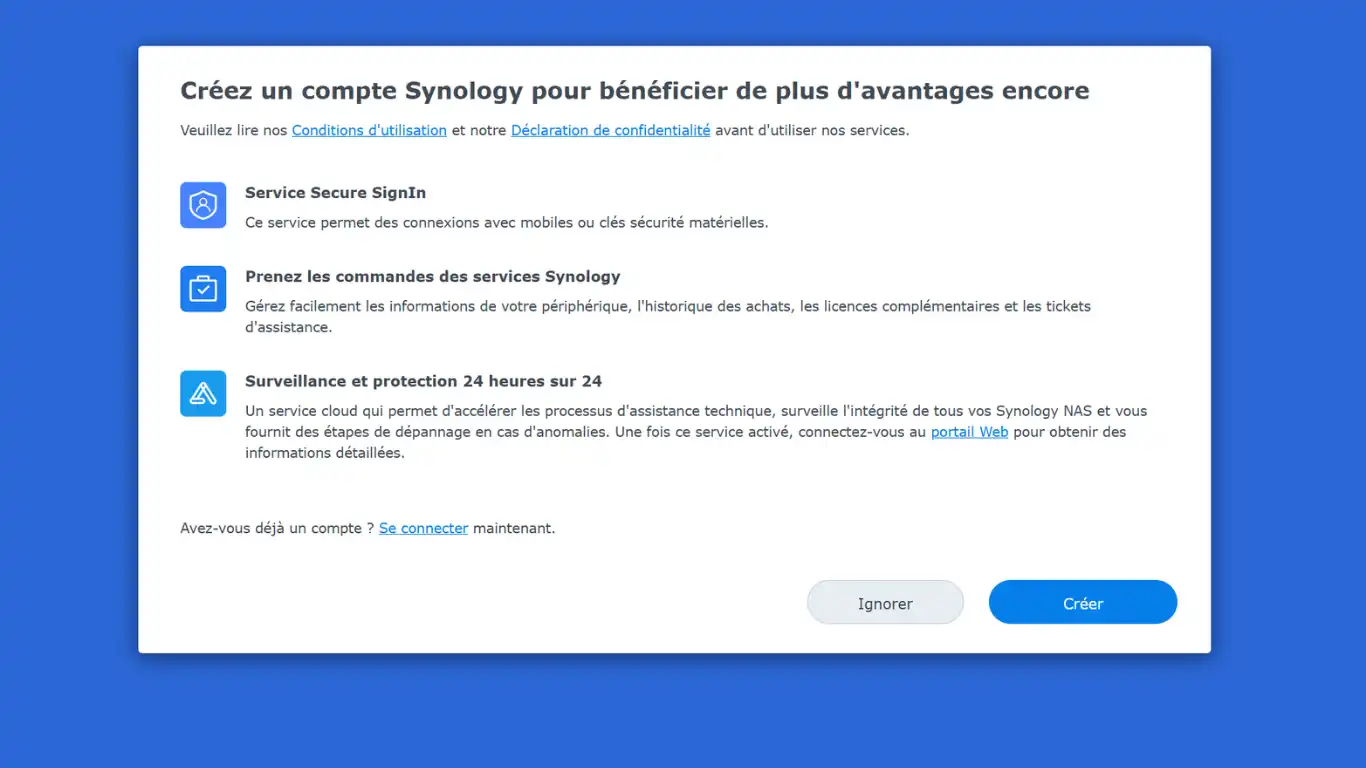Services Synology - Ne pas créer de compte - ce n'est pas un Synology ... Ignorer