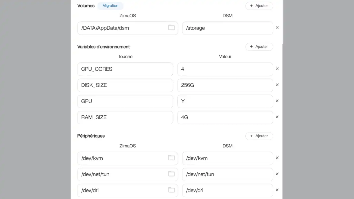/dev/dri=/dev/dri #pour le GPU Intel - optionnel (ligne à laisser ou à suprimer suivant votre matériel)