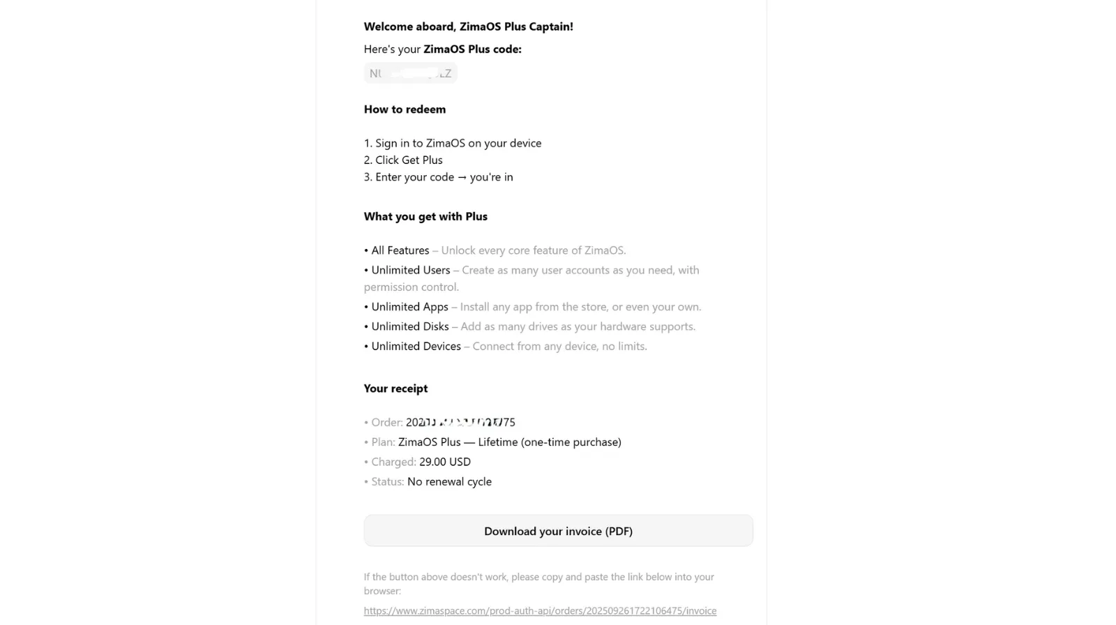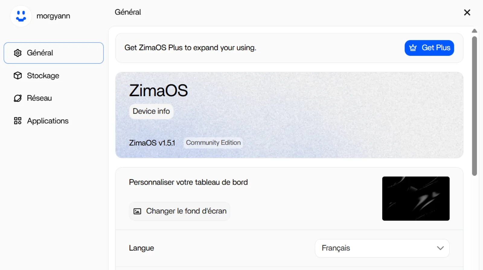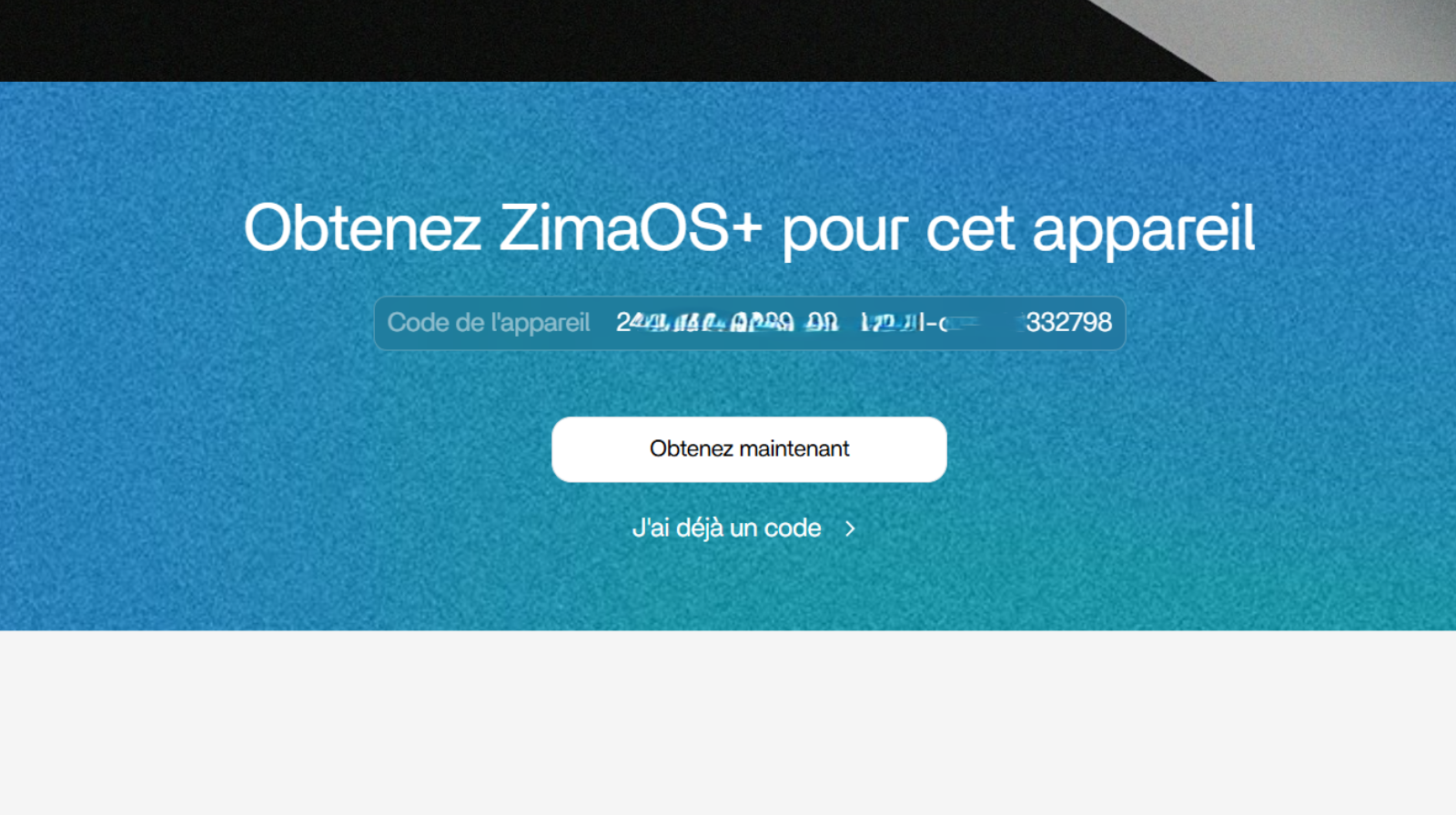 6. Revenez sur l’interface de ZimaOS et cliquez à nouveau sur Get Plus du premier point puis, choisissez J’ai déjà un code du point 2.