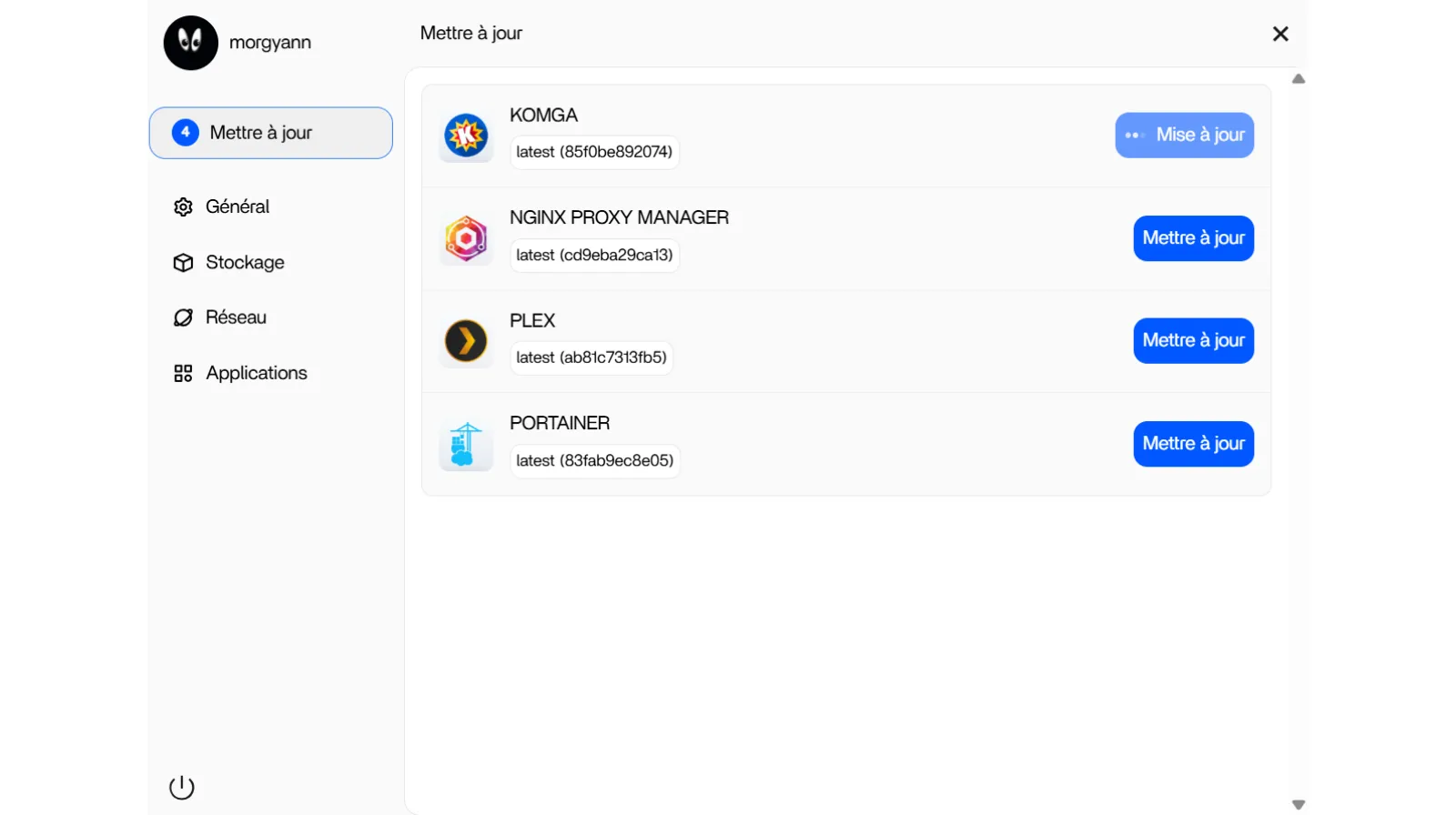 L’interface de ZimaOS vous informe de la disponibilité de la nouvelle version de vos applications en fonctionnement – sur Settings un nouvel onglet Mettre à jour s’affiche