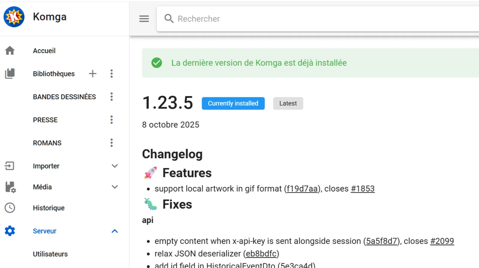 Si la demande de Mettre à jour s’affiche alors que le pop up indique la dernière version, vous pouvez vérifier sur l’interface de configuration de l’application concernée.
